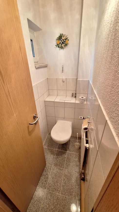 Sanitär: WC auf jeder Etage, kein Bad mit Wanne, Dusche im Keller, EG und DG