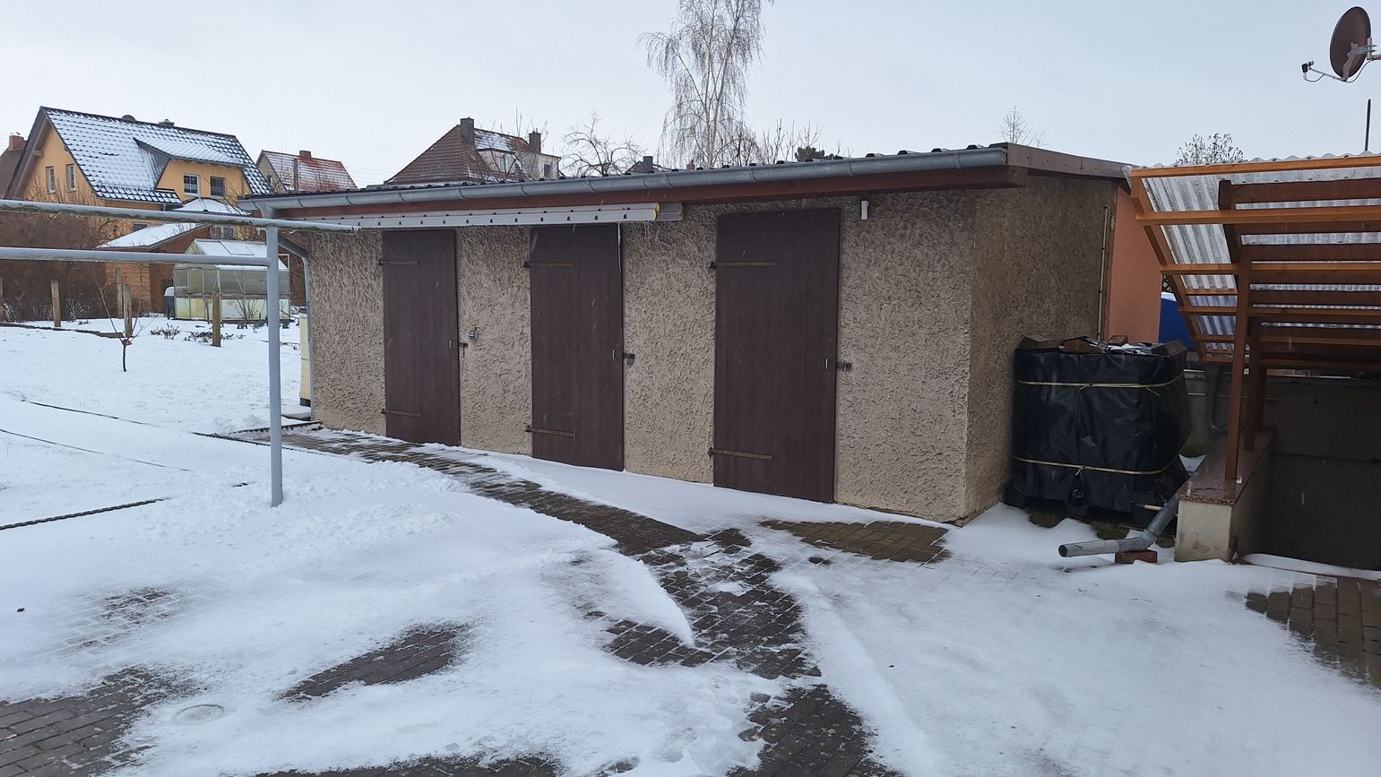 Hinter dem Haus befindet sich ein kleiner Garten sowie ein kleines Nebengebäude mit 3 Schuppen.