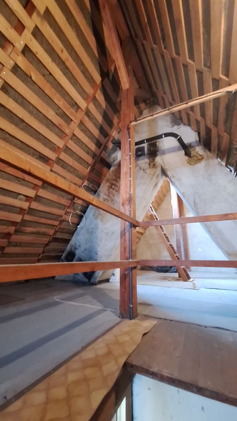 Das Haus verfügt über mehrere Schornsteine, sodass neben der Zentralheizung auch die Möglichkeit des Anschlusses von Kaminen oder Kaminöfen besteht.